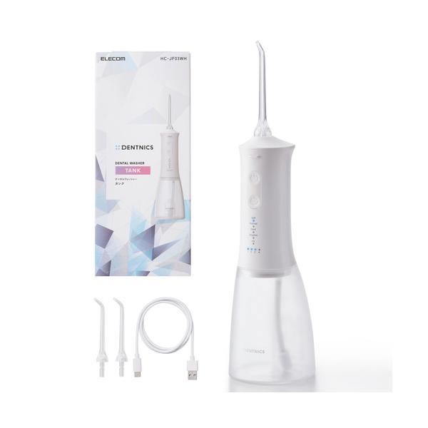 エレコム HC-JF03WH 口腔洗浄器 350mlタンク 4種類モード IPX7 USB充電 標準ノズル2本 ホワイト