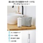 - ■ハンディータイプで、どこでもすぐにお手入れ。勢いのあるパルスジェット水流で食べカスや汚れを除去し、歯と歯ぐきの健康をサポートするタンク伸縮式のデンタルウォッシャーです。手軽に持ち運べるコンパクトサイズで、旅行や出張、オフィスでのランチ後のオーラルケアでも活躍します。■勢いのあるパルスジェット水流で食べカスや汚れを除去し、歯と歯ぐきの健康をサポートするデンタルウォッシャーです。 ■水の力で口内の磨き残しを洗浄。最大毎分2000回のパルスジェット水流は、4種類のモードを選んで使えます。勢いやリズムを調整しながら好みに合わせてお手入れ可能です。 ■ハードモード:強い水流で表面の歯垢や歯間の食べカスなどを洗浄します。 ■ノーマルモード:ソフトモードに慣れた方に。程よい水流で、表面の歯垢や歯間の食べカスを洗浄します。 ■ソフトモード:初めて使用する方や歯ぐきの感覚が敏感な方に。やさしい水流で歯と歯ぐきをケアします。 ■リズムモード:ソフトとハードを交互に切り替えて、歯ぐきを刺激しながらケアします。 ■それぞれのモードで、水流レベルを4段階で変えられます。好みに合わせて微調整できるから、より心地よく使えます。 ■※表面に付着している歯垢は、水流だけでは除去できないため、必ず歯磨きが必要です。歯磨きと併用して、本製品で口腔内を洗浄することをおすすめします。 ■使用後はコンパクトにたためるタンク伸縮式。ノズルも取り外して本体内部に収納でき、持ち運びに便利です。旅行や出張、オフィスでのランチ後のオーラルケアでも活躍します。 ■前回使用したモードを記録し、起動時にすぐに使えるメモリー機能を搭載しています。 ■水はねを気にせず使える。浴室でも使えるIPX7等級の防水性能です。水深1mに静かに沈め、30分放置しても本体に有害な影響が生じるような水の侵入がない検査をクリアしています。 ■※充電用USB Type-C(TM)ポートおよび付属のケーブルは防水対応ではありません。浴室・加湿器のそばなど水に触れる場所では充電しないでください。 ■1回の満充電で約30分の連続使用が可能。しっかり洗える長時間駆動モデルです。 ※ハードモード使用時 ■USB Type-C - USB-Aケーブルを付属しています。5V/1A出力以上のUSB-Aポート搭載のUSB AC充電器で充電可能です。 ■※本製品にUSB AC充電器は付属していません。 ■水が詰まりにくい機構を搭載した給水ホースを採用しています。 ■交換用のフロスノズル(型番:HC-JF04NZ)・給水ホース(型番:HC-JF03TB)は別途購入も可能。長く安心してお使いいただけます。 ■自社環境認定基準を1つ以上満たし、『THINK ECOLOGY』マークを表示した製品です。 ■廃棄物削減に取り組み、製品に同梱する取扱説明書等をペーパーレス化した製品です。■定格電圧:5V(USB給電入力) ※USB充電器は付属していません。必ず、USB-Aタイプの出力5V/1A以上のUSB充電器をご使用ください。■消費電力(最大):3.5W(充電時)■充電方式:USB Type-C(TM)充電■電池種類:リチウムイオン電池■電池定格容量:3.7V/1000mAh■充電時間:約3時間 ※電池を使い切ってから満充電にする場合■充電可能回数:約500回 ※充電可能回数は目安です。ご使用環境によっては変動する場合があります。■連続使用可能時間:約30分 ※満充電からハードモードで使用した場合■重量:約240g ※本体のみ■タンク容量:約190ml■カラー:ホワイト■外形寸法:本体のみ:幅約58mm×奥行約58mm×高さ約196mm(ノズル含まず)、タンク収納時:幅約58mm×奥行約58mm×高さ約133mm(ノズル含まず)■付属品:フロスノズル×2本、専用USB充電ケーブル×1本(USB Type-C - USB-A) ※取扱説明書は同梱しておりません。エレコムホームページおよびパッケージ中蓋より電子取扱説明書をご確認ください。■使用推奨温度:温度5〜40℃■防水性能:IPX7 ※充電用USB Type-Cポートおよび付属のケーブルは防水対応ではありません。浴室・加湿器のそばなど水に触れる場所では充電しないでください。■保証期間:1年間エレコムダイレクトショップ