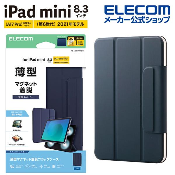 エレコム iPad mini 8.3inch A17 Pro 用 フラップケース 超薄型 マグネット着脱 スリープ対応 フラップ ケース ネイビー ELECOM TB-A25SWVPF2NV