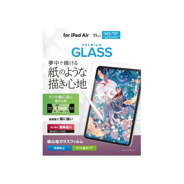 - 【商品説明】画面を傷や汚れから守る、指紋防止、反射防止、紙心地フィルムタイプの画面保護ガラスフィルムです。 フィルムがキレイに貼れる専用ガイドフレーム付きです。機器本体にガイドフレームを取り付けることで、ガラスフィルムを置くだけで簡単に位置決めができます。 特殊表面形状デザインにより、ケント紙に鉛筆で描いたような描き心地を実現します。 万が一、割れてしまった場合もガラス片が飛散しにくい安全設計です。【仕様】●対応機種:11インチiPad Air(M3)、11インチiPad Air(M2) ●対応モデル番号:A3270、A3267、A3266、A2904、A2903、A2902 ●セット内容:画面保護ガラスフィルム(紙心地・反射防止・ケント紙タイプ)×1、ガイドフレーム×1、ホコリ取りシール×1、クリーニングクロス(乾式)×1、ヘラ×1 ●材質:接着面:シリコン、外側:ガラス・PET、ガイドフレーム:ABS <ジェットプライス>