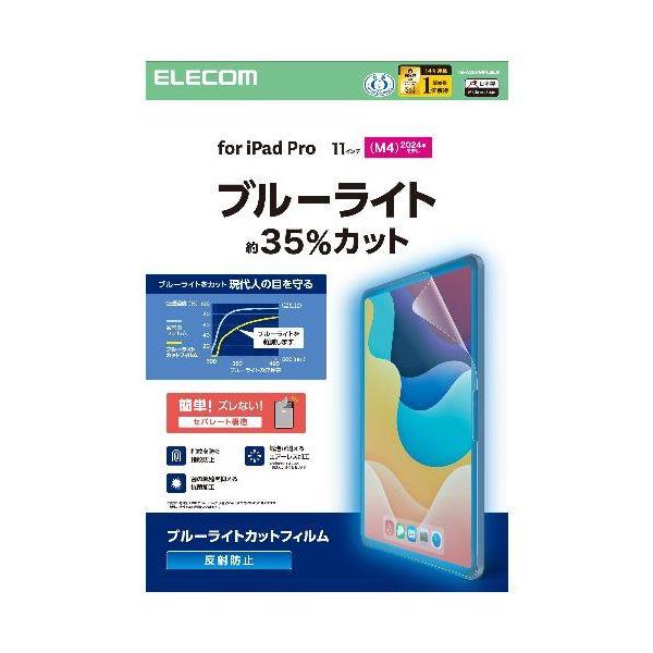エレコム(ELECOM) TB-A25PMFLBLN 11インチ iPad Pro M4 2024年 フィルム アンチグレア ブルーライトカット 抗菌 指紋防止 気泡防止
