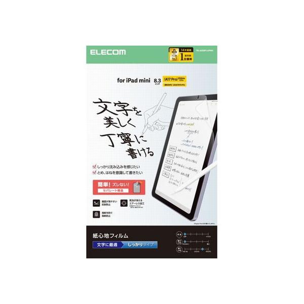 - 【商品説明】画面を傷や汚れから守る、指紋防止、反射防止タイプの紙心地フィルムです。 特殊構造により、しっかりとしたペンの沈み込みを実感でき、「文字を書く」ことにこだわった仕様です。 ペン先が滑らずしっかり止まるため、文字特有のとめ・はねの表現がしやすく文字を美しく書くことが可能です。 時間の経過とともに気泡が目立たなくなる、特殊吸着層を採用したエアーレス加工を施しています。【仕様】●対応機種:iPad mini(A17 Pro)、iPad mini (第6世代) ●対応モデル番号:A2996、A2995、A2993、A2569、A2568、A2567 ●セット内容:画面保護フィルム(紙心地・反射防止・文字用・しっかりタイプ)×1、ホコリ取りシール×1、クリーニングクロス(乾式)×1、ヘラ×1 ●材質:接着面:シリコン、外側:PET <ジェットプライス>