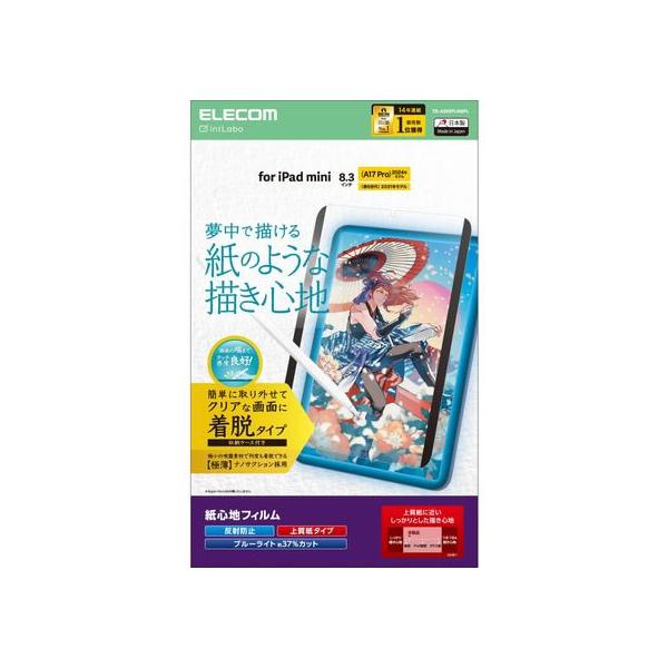 - SEARCH WORD:保護フィルム film film アイパッド あいぱっと商品概要:■動画視聴の際などに取り外して使える着脱式で、端末本来のクリアな画面を楽しめる指紋防止、反射防止タイプの紙心地フィルムです。 ■特殊表面形状デザインにより、上質紙に鉛筆で描いたような描き心地を実現します。 ■ペン先が滑りすぎないため、しっかり線画が描きやすいです。 ■何度でも着脱できる新素材“ナノサクション”を採用し、滑り落ちにくく快適に使用可能です。 ■金属やマグネットなどを使用していないので、端末に影響がなく安心して使用可能です。 ■糊を使わない素材なので、ホコリやゴミが付きにくいです。 ■フィルムの長辺部分にナノサクション面を設置することで貼りやすく、手を置いてもずれにくくなっています。 ■段差のないフラット設計により、置いた手に引っかかることなく快適に描くことができます。 ■眼精疲労を引き起こす要因の一つとされている「ブルーライト」を約37%カットをします。 ■※ブルーライトは目の角膜や水晶体で吸収されずに網膜まで到達し、網膜の機能低下を引き起こす場合があるといわれています。 ■指紋汚れを付きにくくする指紋防止コーティングを施しています。 ■表面にAG加工を施していますので、映り込みを拡散し、画面のギラつきを抑えます。 ■ハードコート加工により、フィルム表面の傷を防止します。 ■端末の形状に合わせたサイズにカット済みなので、パッケージから取り出してすぐに使用可能です。 ■フィルムを貼ったままでも端末操作ができるタッチスクリーン入力に対応しています。 ■※本製品は機器本体に直接貼り付けてご使用ください。他フィルムと重ねて使用すると、タッチ操作の感度が低下する可能性があります。 ■外したフィルムを傷やホコリから守る収納ケースが付属しています。 ■自社環境認定基準を1つ以上満たし、『THINK ECOLOGY』マークを表示した製品です。 ■環境保全に取り組み、製品の包装容器が紙・ダンボール・ポリ袋のみで構成されている製品です。商品仕様:■メーカー:エレコム■JANコード:4549550385510■商品名:8.3インチiPad mini(A17 Pro)保護フィルム/紙心地/反射防止/上質紙タイプ/着脱式■型番:TB-A25SFLNSPL■対応機種:iPad mini(A17 Pro)、iPad mini (第6世代) ■対応モデル番号:A2996、A2995、A2993、A2569、A2568、A2567 ■セット内容:着脱式画面保護フィルム(紙心地・反射防止・上質紙タイプ)×1、収納ケース×1 ■材質:吸着面:アクリル、外側:PET ■ブルーライトカット率:約37% ■取り付け方法:ナノサクション採用フレームが画面へ吸着■■ご注意事項:※ 画像はイメージです。※ 画面上のカラーはご使用ブラウザやモニターの設定により、実物とは若干異なる場合がございます。あらかじめご了承の上、ご注文をお願いいたします。※記載以外の商品仕様についてはメーカーホームページにてご確認下さい。※商品概要、仕様、サービス内容及び企業情報などは商品発表時点のものです。※最新の情報に関しましては、メーカーサイトをご覧ください。※発売前予約商品についてはメーカーの商品製造数により納期が遅れる場合やご注文キャンセルをお願いする場合がございます。