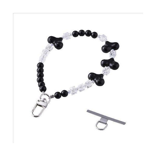 エレコム(ELECOM) P-STHBEHBK ブラック スマホストラップ ハートビーズ ハンドストラップ 手首 落下防止 かわいい おしゃれ iPhone/Android対応
