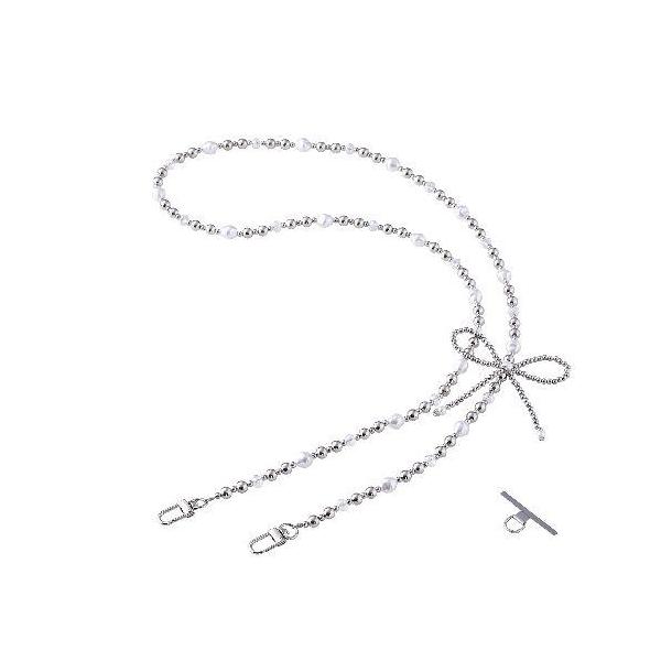 エレコム(ELECOM) P-STSDH1BERSV シルバー スマホストラップ リボンパールビーズ ショルダー 首掛け ストラップホルダーシート付 iPhone/Android対応
