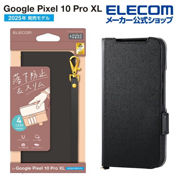 Google Pixel 10 Pro XL 用 手帳型ケース 磁石付 耐衝撃 ハンドストラップ付 GooglePixel 10 Pro XL ソフトレザー ブラック PM-P253PLFY4BK エレコム 在庫処分