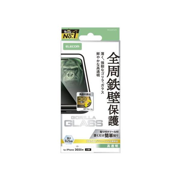 【お取り寄せ】エレコム iPhone17 ガラスフィルム フレーム ゴリラ PM-A25AFLGFO