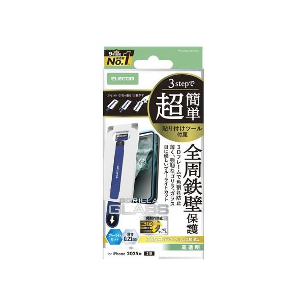 【お取り寄せ】エレコム iPhone17 ガラスフィルム ゴリラ BLC PM-A25AFLGFOTBL スマートフォン用液晶保護フィルム スマートフォン関連品 スマホ