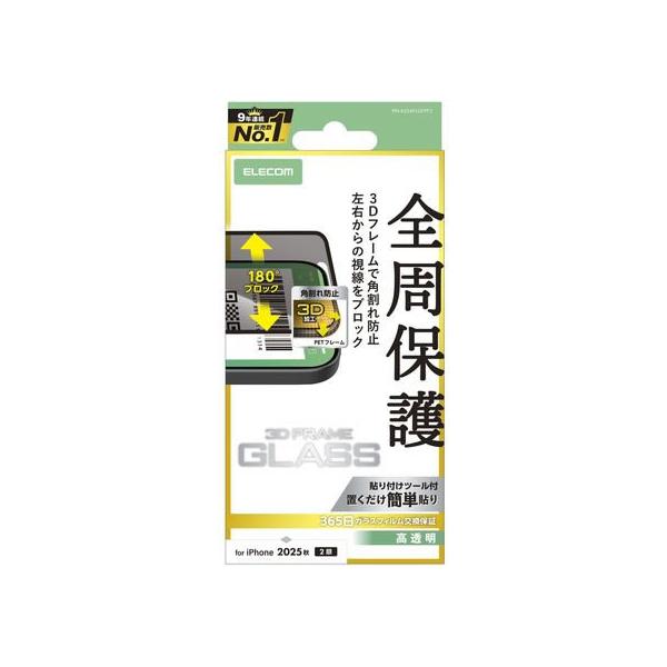【お取り寄せ】エレコム iPhone17 ガラスフィルム のぞき見防止 PM-A25AFLGFPF2