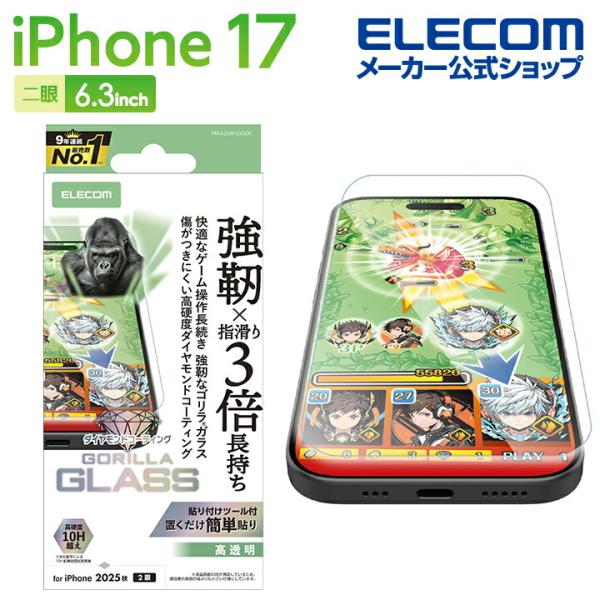 iPhone 17 用 ガラスフィルム ゲーミング ゴリラ ダイヤモンドコート iPhone17 ガラス 液晶 保護フィルム ELECOM PM-A25AFLGODE エレコム 在庫処分
