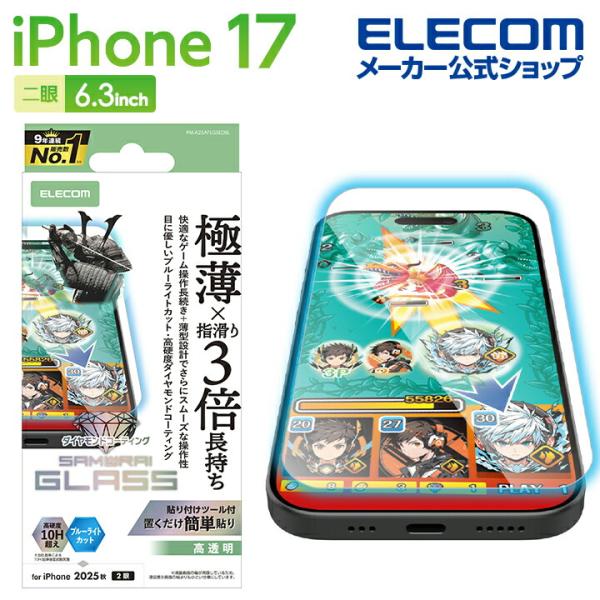 iPhone 17 用 ガラスフィルム ゲーミング ダイヤモンドコート ブルーライトカット iPhone17 ガラス 液晶 保護フィルム PM-A25AFLGSEDBL エレコム 在庫処分
