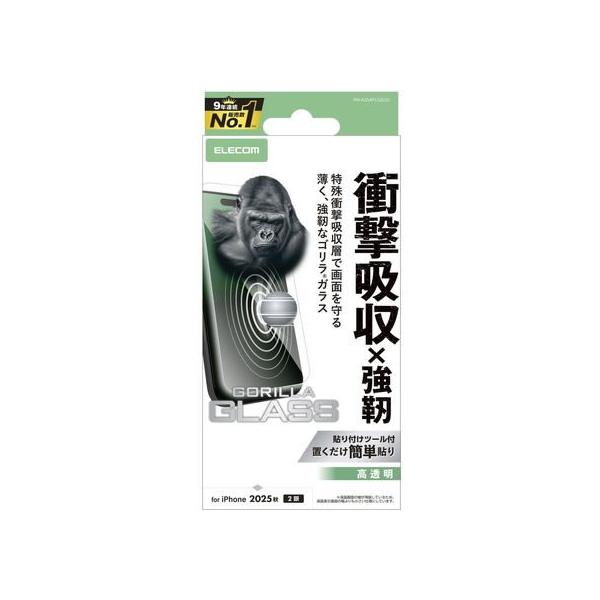 【お取り寄せ】エレコム iPhone17 衝撃吸収ガラス ゴリラ PM-A25AFLGZGO スマートフォン用液晶保護フィルム スマートフォン関連品 スマホ タブレット関連品