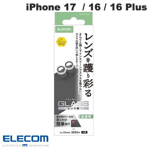エレコム ELECOM iPhone 17 / 16 / 16 Plus カメラレンズガラスフィルム ラインストーン シルバー PM-A25AFLLGRSV