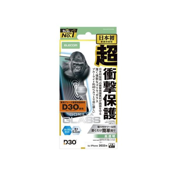 【お取り寄せ】エレコム iPhone17Pro ガラスフィルム ゴリラ BLC PM-A25CFLG3OBL スマートフォン用液晶保護フィルム スマートフォン関連品 スマホ