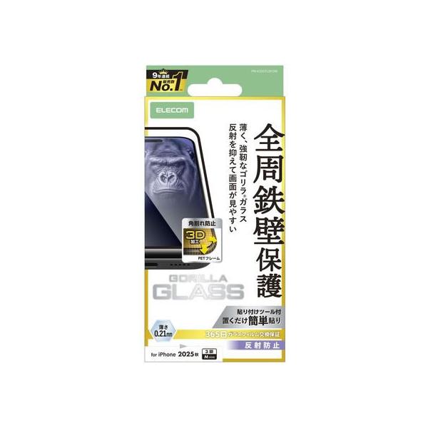 【お取り寄せ】エレコム iPhone17Proガラスフィルム ゴリラ 防反射 PM-A25CFLGFOM スマートフォン用液晶保護フィルム スマートフォン関連品 スマホ