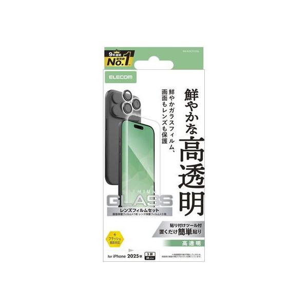 【お取り寄せ】エレコム iPhone17Proガラスフィルム レンズガラスセット PM-A25CFLGGL スマートフォン用液晶保護フィルム スマートフォン関連品 スマホ