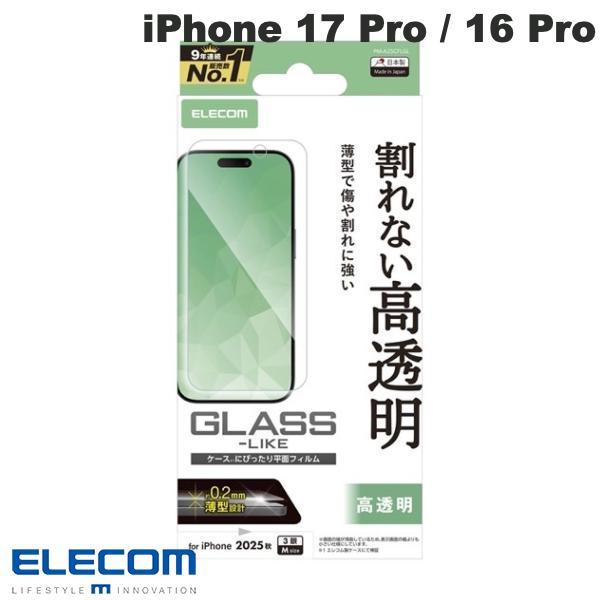 エレコム ELECOM iPhone 17 Pro / 16 Pro ガラスライクフィルム 薄型 高透明 PM-A25CFLGL