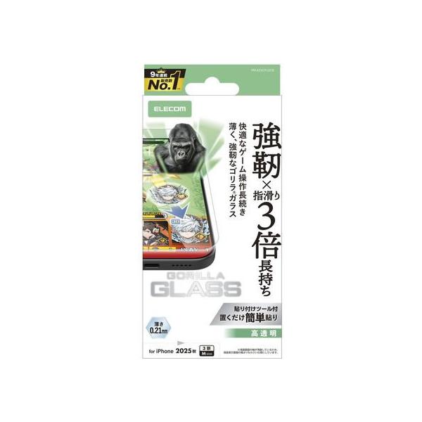 【お取り寄せ】エレコム iPhone17Proガラスフィルム ゲーミング 薄型 PM-A25CFLGOE