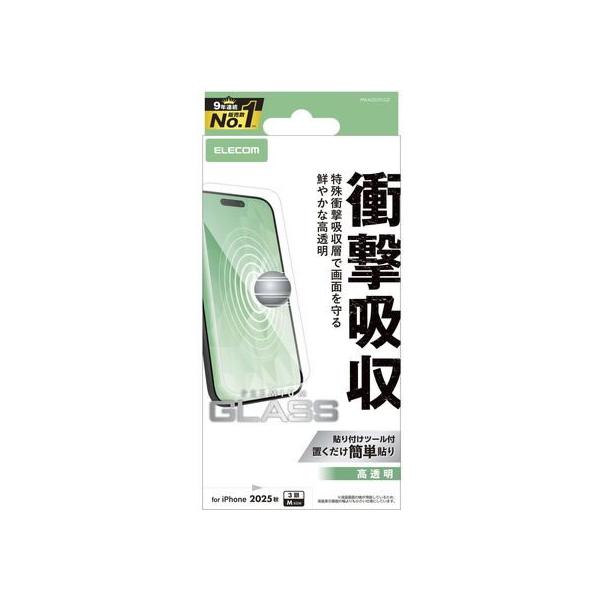 【お取り寄せ】エレコム iPhone17Pro 衝撃吸収ガラス 高透明 PM-A25CFLGZ