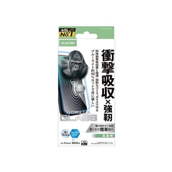 【お取り寄せ】エレコム iPhone17Pro 衝撃吸収ガラス BLC PM-A25CFLGZGOBL