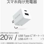 - 【仕様】●対応機種:USB Type−C(TM)ポートからUSB Power Delivery 20W、またはUSB−Aポートから12Wの規格内で充電可能な機器。2ポート以上同時接続時、合計最大15Wまでの出力で充電・給電可能な機器とその組み合わせ。 ●コネクター形状:USB Type−Cポート×1、USB−Aポート×1 ●定格入力電圧:AC100−240V 50/60Hz ●定格入力電流:0.6A ●定格出力電力(単独接続時):USB Type−Cポート:最大出力20W、 USB−Aポート:最大出力12W、 ●定格出力電力(2ポート同時接続時(1)):合計最大15W(2ポート同時出力時USB Power Deliveryでの出力はできません) ●定格出力電圧(単独接続時):USB Type−Cポート:5V/9V、 USB−Aポート:5V ●定格出力電圧(2ポート同時接続時(1)):USB Type−Cポート:5V、 USB−Aポート:5V ●定格出力電流(単独接続時):USB Type−Cポート:5V時3A/9V時2.22A、 USB−Aポート2.4A、 ●定格出力電流(2ポート