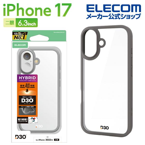 iPhone 17 用 ハイブリッドケース D3O フレームカラー メタルステッカー付 iPhone17 ケース カバー チャコールグレー ELECOM PM-A25AD3OFCCH エレコム 在庫処分