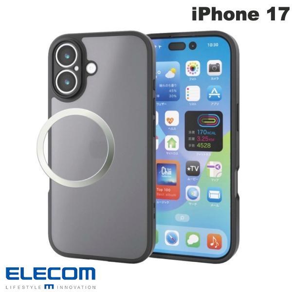 エレコム ELECOM iPhone 17 ハイブリッドケース 極限 マットブラックラバーコート メタルリング付 ブラック PM-A25AHVCKKBK