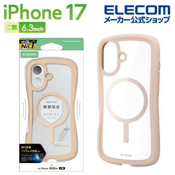 iPhone 17 用 Grippy ハイブリッドケース フレームカラー MAGKEEP iPhone17 ケース カバー ベージュ ELECOM PM-A25AGRPFMBE エレコム 在庫処分