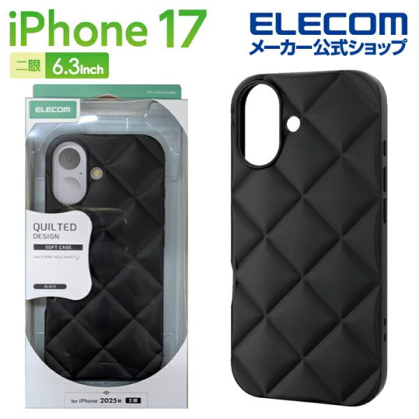 iPhone 17 用 ソフトケース キルティング iPhone17 ソフト ケース カバー ブラック ELECOM PM-A25AUCQBK エレコム 在庫処分