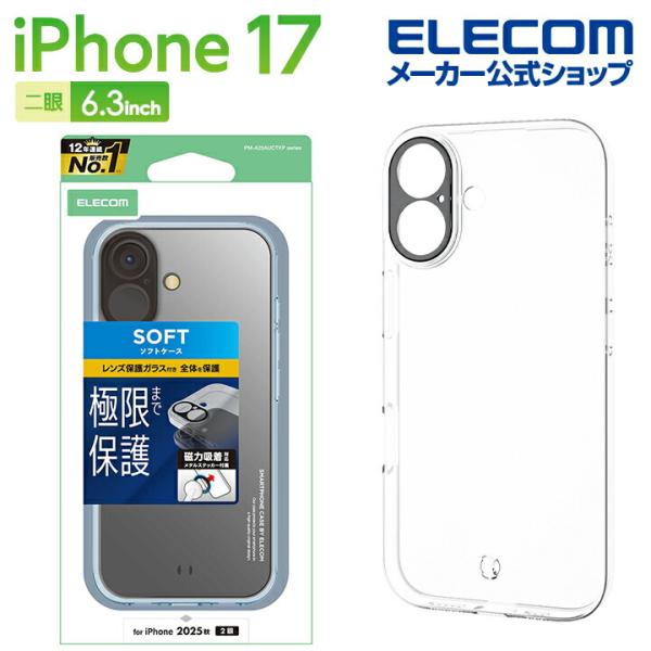 エレコム iPhone 17 用 ソフトケース 極限Plus メタルステッカー付 iPhone17 ソフト ケース カバー クリア ELECOM PM-A25AUCTKPCR 在庫処分