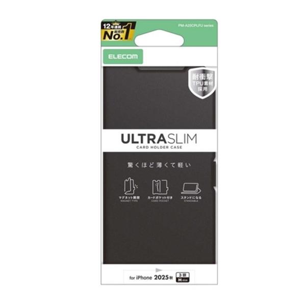 エレコム iPhone 17 Pro対応 手帳型ケース 薄型 磁石付 PM-A25CPLFUBK