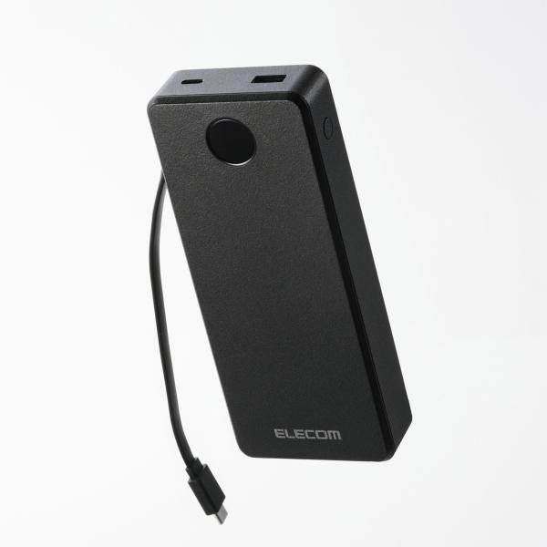 エレコム モバイルバッテリー 残量が見える ケーブル一体型 モバイルバッテリー 20000mAh 67W Type-C ケーブル一体型 ブラック ELECOM DE-C77-20000BK