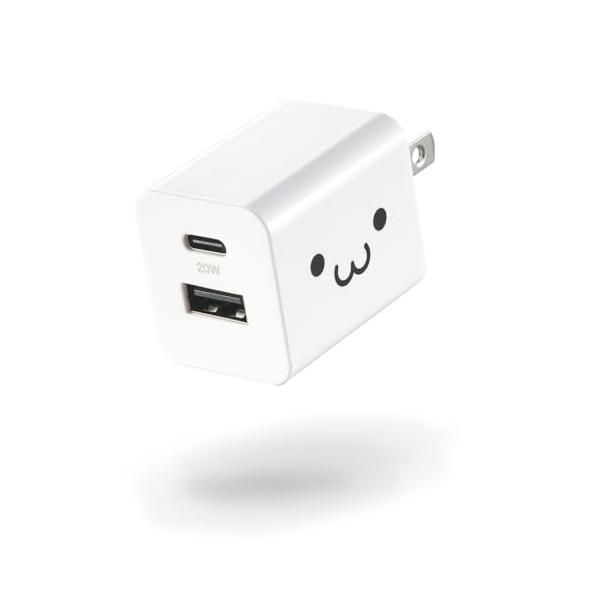 エレコム 充電器 コンセント USB-C USB-A 2ポート 20W PD対応 折りたたみ式プラグ しろちゃん EC-AC12020WF