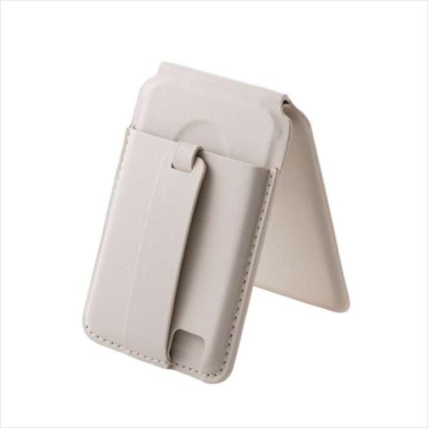 代引不可 MagSafe対応 カードケース スタンド iPhone用 磁気防止シート付 3枚収納 ベージュ