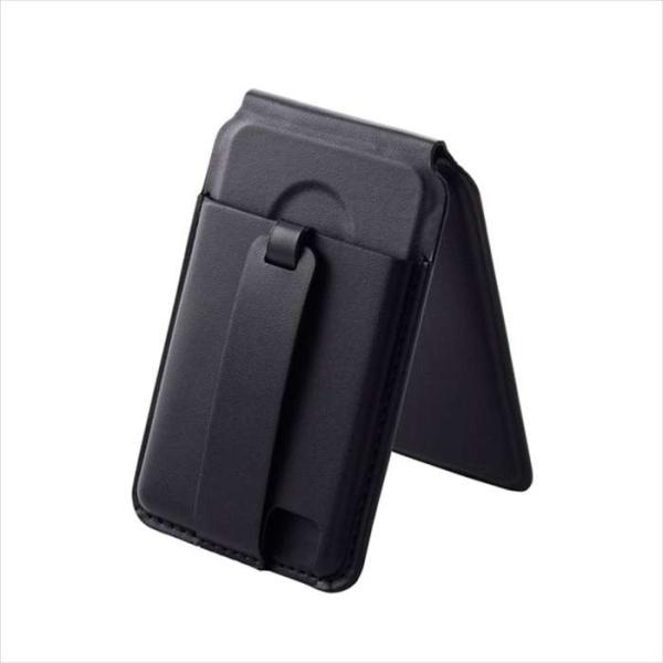 - お店TOP>家電>スマートフォン・携帯電話>スマートフォンアクセサリ>スマートフォン用アクセサリー>エレコム MagSafe カードケース スタンド iPhone用 磁気防止シート付 ブラック (1個)【エレコム MagSafe カードケース スタンド iPhone用 磁気防止シート付 ブラックの商品詳細】●MagSafeで簡単に着脱できる、カードスタンドです。●スマートフォンを縦・横どちらにも置くことができ、さまざまなシーンでも快適に動画視聴ができます。●カードが内側に2枚、外側に1枚収納可能。内側は落下の心配がなく、外側はサッと取り出せる便利なポケットです。●指を入れることができるバンド付きで、片手操作や持ち運びに便利です。●スマートフォンとICカードの干渉を防ぐ、磁気防止シートを付属。改札もスムーズに通れます。●※スマートフォンのNFC機能をオフにしてください。オフにできない機種では、タッチ位置を調整するなど工夫が必要な場合があります。●※地域やカードの種類によって感知方式が異なるため、タッチ時の感度に差が出ることがあります。●軽量・スリムなデザインなのでコンパクトに持ち運べ、スマートフォンに取り付けたまま操作するときも邪魔になりにくいです。●ケース内部にはカードストッパーが付いているので、カードを入れた状態で逆さまにしてもカードが落ちてくることはありません。●ケース下部にはプッシュホールが開いていて、指でカードを押し上げると簡単にカードを取り出すことができます。●MagSafe対応スマホケースやマグネットリングステッカーと併用することで、MagSafe非対応のスマートフォンでも使用可能です。●指紋が付きにくく、マットな質感としっとりとした手触りの素材を採用しています。【セット詳細】スタンド、磁気防止シート【規格概要】・対応機種:MagSafe対応iPhone ※MagSafe非対応の機器本体やケースには使用できません。・材質:スタンド:ポリウレタン・ポリエステル・ポリカーボネート・PET・鉄・磁石、磁気防止シート:PET・鉄・外形寸法:W約66mm×D約13mm×H約102mm・カラー:ブラック【原産国】中国【発売元、製造元、輸入元又は販売元】エレコムリニューアルに伴い、パッケージ・内容等予告なく変更する場合がございます。予めご了承ください。エレコム541-8765 大阪市中央区伏見町4丁目1番1号 9F0570-084-465広告文責:楽天グループ株式会社電話:050-5577-5043[携帯電話・スマートフォン周辺機器]