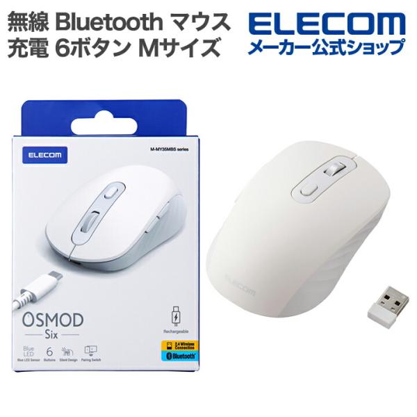 エレコム OSMOD Six USB無線 Bluetooth 充電静音マウス 6ボタン Mサイズ マウス 無線2.4GHz マルチ接続 充電式 ホワイト M-MY35MBSAWH