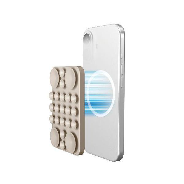 エレコム(ELECOM) P-TKPTMAG01BG ベージュ スマホホルダー 吸盤 MagSafe対応 iPhone用 強力固定 動画視聴 自撮り 壁鏡ガラス貼付 シリコン コンパクト