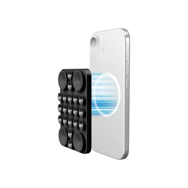 - 【商品説明】壁や鏡、窓ガラスなどの平らな面にシリコン吸盤で簡単に吸着可能。スマートフォンを自由な向きで固定できます。 ※素材によっては吸着できない場所があります。 ※取り付け面は、必ず平らで清潔な状態にしてください。 ※落下するおそれがあるため、長時間の連続した使用は避けてください。 自撮りはもちろん、ダンス動画や全身を写した写真撮影、さまざまなポーズでの撮影にもぴったりです。【仕様】●対応機種:MagSafe対応iPhone ※MagSafe非対応の機器本体やケースには使用できません。 ●セット内容:MagSafe対応吸盤スマホパッド ●材質:シリコン、磁石、スチール、亜鉛合金 ●外形寸法:W約60mm×D約9.4mm×H約90mm ●耐荷重:約250gまで ※耐荷重を超えて使用しないでください。 ●カラー:ブラック <ジェットプライス>