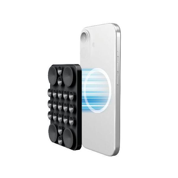 エレコム(ELECOM) P-TKPTMAG01BK ブラック スマホホルダー 吸盤 MagSafe対応 iPhone用 強力固定 動画視聴 自撮り 壁鏡ガラス貼付 シリコン コンパクト