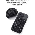 - 壁や鏡、窓ガラスなどの平らな面にシリコン吸盤で簡単に吸着可能。スマートフォンを自由な向きで固定できます。 ※素材によっては吸着できない場所があります。 ※取り付け面は、必ず平らで清潔な状態にしてください。 ※落下するおそれがあるため、長時間の連続した使用は避けてください。 両手が自由になるため、撮影も思いのまま。自撮りはもちろん、ダンス動画や全身を写した写真撮影、さまざまなポーズでの撮影にもぴったりです。 鏡に貼り付ければ、メイク中の画面チェックもスムーズに行えます。 キッチンの壁に貼って、レシピ動画を見ながら料理を楽しめます。 MagSafe非対応のスマートフォンやケースにも対応し、背面を強力吸盤でピタッと固定。取り外しも簡単です。 ※ケースの材質によって対応できない場合がありますのでご了承ください。 持ち運びやすいコンパクトサイズで、ポケットやバッグにすっきり収まり、外出先でもサッと取り出して使えます。 自社環境認定基準を1つ以上満たし、『THINK ECOLOGY』マークを表示した製品です。 環境保全に取り組み、製品の包装容器におけるプラスチック重量を、社内基準製品より20%以上削減した製品です。