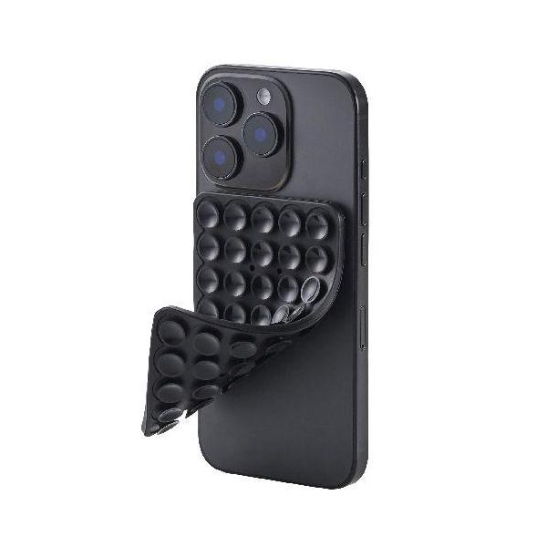 エレコム(ELECOM) P-TKPTSUC01BK ブラック スマホホルダー 両面吸盤 全機種対応 強力固定 動画視聴 自撮り 壁鏡ガラス貼付 シリコン コンパクト