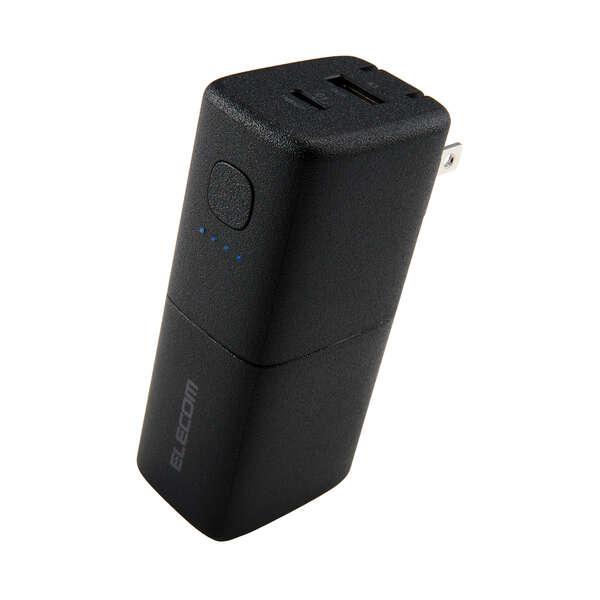ELECOM エレコム DE-AC14-5000BK モバイルバッテリー/リチウムイオン電池/AC一体型/USB PD/30W/5000mAh/USB-C入出力/USB-A出
