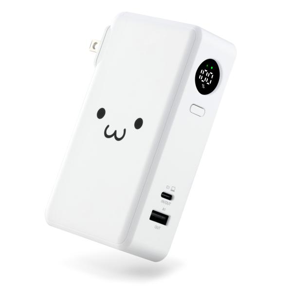 - ■AC充電器としてもモバイルバッテリーとしても使用可能な2in1タイプ!ポーチやポケットにすっぽり収まる手のひらサイズ。2ポート搭載で複数のデバイスを一気に充電できる、AC充電器一体型モバイルバッテリーです。かわいいしろちゃんモデルです。■1台2役で使える、USB Power Delivery AC充電器一体型モバイルバッテリーです。 ■USB Type-C(TM)ポート×1、USB-Aポート×1を搭載。スマートフォンとワイヤレスイヤホンなど、複数のデバイスを接続して一気に充電できます。 ■モバイルバッテリーとAC充電器をそれぞれ持ち運ぶ必要がなくなり、出張や旅行時の荷物を減らせます。 ■モバイルバッテリー使用時最大出力30Wだから、スマートフォンを高速充電可能。外出先での急な充電切れの際も安心です。 ■本製品をコンセントに挿した状態でスマートフォンを接続することで、AC充電器としても使えます。 ■AC充電器として67Wの出力が可能。スマートフォンやタブレットはもちろん、MacBook Airなどのノートパソコンの充電にも使えます。 ■※67Wまでで充電可能なノートパソコンに限ります。 ■USB Power Delivery(PD)規格およびPPS規格に対応。接続機器に応じて電圧や電流を自動調整するため、iPhoneなどのスマートフォンやiPadなどのタブレットはもちろん、ノートパソコンまで幅広く充電できます。 ■※USB Power Deliveryとは、アダプターと接続機器間で情報をやり取りすることで、その機器間における最適な電力を選択し、高速充電を実現するUSB規格です。PPS(Programmable Power Supply)とは、0.02V単位で電圧を調整し、最適な電力で効率的に供給することができるUSB Power Deliveryのオプション規格です。 ■本製品とスマートフォンを同時に接続することでまとめて充電できる“まとめて充電”に対応しています。 ■※本製品はパススルー充電に対応しており、バッテリーを介さずに充電器から接続機器へ直接充電するため、電池の劣化を抑えられます。 ■コンセントに挿すだけで本製品を直接充電可能。本製品は約2時間50分で充電できます。 ■※本製品のみを充電した場合の目安時間です。 ■低電流モードにより、Bluetooth(R)ヘッドセット・イヤホンなどの小型電子機器を最適な電流で充電できます。 ※USB-Aポートのみ対応 ■接続機器を見分けて最適な充電を行う”おまかせ充電”に対応しています。 ※USB-Aポートのみ対応 ■電源プラグ部分にはスイングプラグ機構を採用。回転させて本体に収納できるためスマートに持ち運べます。 ■本製品(バッテリー容量10000mAh)で、1800mAhのスマートフォンを約3.3回、3000mAhのスマートフォンを約1.9回充電可能です。 ■※満充電した本製品で電源オフの状態のスマートフォンを充電する際の目安回数です。充電中に電源を入れたり、機器を使用したりしている場合は記載の数値まで充電できない場合があります。 ■Nintendo Switch(TM) 2/Nintendo Switch(TM)/Nintendo Switch Lite(TM)の充電が可能です。 ■※Nintendo Switchシリーズは動作モードによっては充電しながらのゲームプレイができない場合があります。また、Nintendo Switch2ではドック併用での使用には対応していません。 ■LEDパネルでバッテリー残量を1%単位で確認しながら使えます。 ■約500回繰り返し使用可能な充電式リチウムイオン電池を搭載しています。 ■内蔵の充電式リチウムイオン電池は、JIS C 62133-2:2020およびJIS C 8715-2:2024に準拠した安全設計です。 ■日本の電気用品安全法(PSE)の技術基準に適合した安全性の高い商品です。 ■過充電・過放電・過電流防止機能および短絡保護機能と温度検知機能の5つの保護機能を備えた安心の回路設計です。 ■Thermal Protectionを搭載し、通電時に温度を監視・制御することで、お使いの機器を守ります。 ■電池容量が160Wh(43,243mAh)以下であるため、機内持ち込みも可能です。 ■※航空会社の規定によって例外がある場合があります。 ■※工場出荷時に70%程度充電されています。充電式リチウムイオン電池は時間とともに放電するので、ご使用になる前に充電することを推奨します。 ■※ケーブルを挿したままにするとバッテリーの残量が減ってしまいます。使用しない場合は必ずケーブルを外してください。 ■※本製品とスマートフォンを接続するケーブルは付属していません。 ■※USB Type-C and USB-C are trademarks of USB Implementers Forum. ■本製品は、一般社団法人JBRCの回収対象製品であり、回収協力自治体や協力店(家電量販店・ホームセンターなど)で回収が可能です。 ■※JBRCのホームページでお住まいの地域の回収協力自治体・協力店をご確認ください。 ■筐体には再生プラスチックを採用しています。 ■管理された森林から生産された紙を使用し、環境負荷の低い、プラスチックレスパッケージを実現しています。 ■自社環境認定基準を1つ以上満たし、『THINK ECOLOGY』マークを表示した製品です。 ■環境保全に取り組み、製品本体の主たる構成部品や構成要素の原料に占めるリサイクル原料の割合が10%を超えている製品です。 ■環境保全