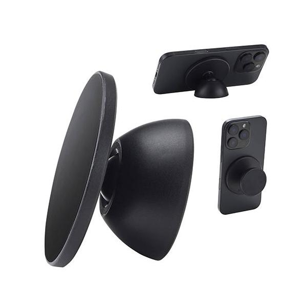 エレコム(ELECOM) P-DSMMWBK ブラック MagSafe対応 スマホスタンド スマホグリップ 両面マグネット キッチン・冷蔵庫・壁 メタルプレート付属