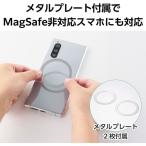 - 【商品説明】MagSafe対応スマートフォンの背面にマグネットの力で固定できます。 MagSafe対応スマホケースや付属のメタルプレートと併用することで、MagSafe非対応のスマートフォンでも使用可能です。 ※ケースの材質、厚みなどによって対応できない場合がありますのでご了承ください。 メタルプレートは2枚付属し、貼り付け位置の失敗や粘着力低下時の交換用として、ケース交換時にも使えます。【仕様】●材質:ABS、TPR、シリコン、磁石(マグネット部) ●外形寸法:W約58mm×D約58mm×H約42mm(突起物含まず) ※折り畳み時 ●重量:約86g ●カラー:ブラック ●対応機種:MagSafe対応のiPhone ※2025年11月現在 ●内容物:スタンド、メタルプレート×2、サポートシート、六角レンチ <ジェットプライス>