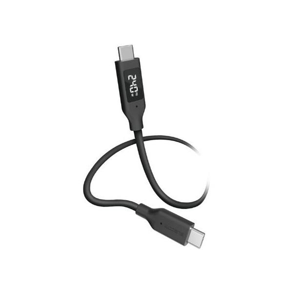 - 電力ディスプレイ付きケーブル USB-C-USB-C 240W なめらか 1m ブラック■充電状況がひと目で分かる、電力ディスプレイ付きのUSB Type-C(TM)-USB Type-Cケーブルです。 ■コネクター部に搭載されたディスプレイで、接続した機器間での充電電力値がリアルタイムで確認できます。正しく充電できているか視覚的に確認できるため安心です。 ■※ディスプレイは機器が接続されている状態でのみ点灯します。点灯まで数秒程度、時間を要する場合があります。 ■満充電に近づくと、ディスプレイに表示される電力値が徐々に小さくなっていくため、充電の終了時期が分かりやすくて便利です。 ■※満充電に近づくと、供給される電力値が小さくなるため、0Wと表示される場合があります。 ■ケーブル外皮には、やわらかくなめらかな手触りのシリコン素材を採用しています。折り癖がつきにくく、高い耐久性を兼ね備えており、束ねても絡みにくく、取り回しやすいです。 ■USB Power Delivery EPR対応により、最大240W(48V/5A)の電力で接続機器への充電が可能です。ハイスペックパソコンをはじめ、高出力を必要とする機器を充電する際も安心です。また、従来のUSB Power Delivery 最大100W(20V/5A)にも対応しています。 ■USB Power Delivery EPR(Extended PowerRange)は、接続機器を高速充電することや、大きな電力を必要とする機器の給電に適したUSB規格です。 ■※接続する機器がUSB Power Delivery EPR対応およびUSB Power Delivery対応である必要があります。 ■※ご使用になる充電器などの性能によって、供給される電流値が異なります。 ■eMarkerを搭載し、充電時に接続する機器へ供給する電圧を自動で調整します。適正な電圧で給電できるため、安定した充電が可能です。 ■USB Type-Cポートを搭載したパソコンなどに、USB Type-Cポート搭載のスマートフォンやタブレットを接続し、最大480Mbpsでのデータ転送が可能です。 ■コネクター部分に製品仕様が一目で分かる印字付きです。 ■サビなどに強く信号劣化を抑える金メッキピンを採用しています。 ■EUの「RoHS指令(電気・電子機器に対する特定有害物質の使用制限)」に適合(10物質)した、環境にやさしい製品です。 ■※ディスプレイに表示される電力値は目安です。使用する環境によって、正確な表示ではない場合があります。 ■※ディスプレイに表示される電力値は、本製品の駆動電力として消費する電力を除き、接続した機器に供給される電力値が表示されます。 ■※本製品と接続する機器の間に、アダプター、ハブ、ドッキングステーションなどの機器を接続すると、正常に動作しない場合があります。 ■※接続機器や環境によって、正常に動作しない場合があります。すべての機器での動作を保証するものではありません。 ■※接続機器の性能によって供給される電力値・通信速度が異なります。 ■※USB Type-C and USB-C are trademarks of USB Implementers Forum. ■自社環境認定基準を1つ以上満たし、『THINK ECOLOGY』マークを表示した製品です。 ■環境保全に取り組み、製品の包装容器におけるプラスチック重量を、社内基準製品より20%以上削減した製品です。 ■環境保全に取り組み、製品の包装容器が紙・ダンボール・ポリ袋のみで構成されている製品です。■コネクター形状 : USB Type-C(TM)プラグ - USB Type-Cプラグ ■対応機種 : USB Type-Cポート搭載のスマートフォン、パソコン、AC充電器、モバイルバッテリーなど ■規格 : Hi-Speed USB(USB2.0) ■対応転送速度 : 最大480Mbps ※理論値 ■USB Power Delivery対応 : ○ ■対応電圧/電流 : 最大48V/5A(240W) ■DisplayPort Alternate Mode対応 : × ■プラグメッキ仕様 : 金メッキピン ■ツイストペアケーブル(通信線) : ○ ■ケーブル長 : 約1m ※コネクター含まず ■ケーブル太さ : 約4.2mm ■カラー : ブラック ■パッケージ形態 : 紙箱 ■保証期間 : 1年間 ■環境配慮事項 : EU RoHS指令適合、THINK ECOLOGYマーク
