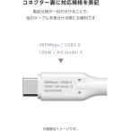 - エレコム MPA-CC5PTSS10WH 100W PD USB Type-C ケーブル 1m ブレーカー搭載 やわらかシリコン ホワイト 発売日:2025年11月21日●安心と使いやすさを両立!異物の挟み込みや水濡れなどの意図しない接続によるショートや発熱・発火を検知し、自動で電流を遮断するブレーカーを搭載したUSB Type-C(TM)ケーブルです。なめらかな手触りで、やわらかく扱いやすいシリコン素材を採用しています。AC充電器やモバイルバッテリー、スマートフォンやタブレットなど、USB Type-Cポート搭載の機器同士を接続して、充電やデータ転送ができます。●異物の挟み込みや水濡れなどの意図しない接続によるショートや発熱・発火を検知して、自動で電流を遮断するブレーカー搭載のUSB Type-C(TM)ケーブルです。万が一の事故を防ぎ、日常生活での充電も安心です。●USB Type-Cコネクター内部にブレーカー(ThermalProtection for Cable)を内蔵しているので、高温状態や過電流を検知して電流を遮断。異物の挟み込みや水滴がついた状態など、意図しない接続によるショートや発熱・発火から機器を守ります。●※ブレーカーは、コネクター内部の温度や電流が正常な状態に戻ると自動的に復帰します。●シリコン素材を採用した、なめらかな手触りのケーブルです。やわらかく絡みにくいのが特長で、狭い場所への配線や持ち運びにも便利です。●AC充電器やモバイルバッテリー、スマートフォン、パソコン、タブレットなど、USB Type-Cポート搭載の機器同士を接続して、充電やデータ転送ができます。●最大480Mbpsのデータ転送が可能です。写真や動画などのデータ移動や同期が快適にできます。 ※理論値●USB2.0(Hi-Speed)に対応しています。●USB Power Deliveryに対応し、最大100W(20V/5A)で充電できます。スマートフォンやタブレット、パソコンなどの高速充電が可能です。 ●※接続する機器がUSB Power Delivery対応である必要があります。 【仕様】コネクター形状:USB Type-C(TM)プラグ - USB Type-Cプラグ対応機種:USB Type-Cポート搭載のスマートフォン、パソコン、AC充電器、モバイルバッテリーなど規格:Hi-Speed USB(USB2.0)対応転送速度:最大480Mbps ※理論値USB Power Delivery対応:○対応電圧/電流:最大20V/5A(100W)DisplayPort Alternate Mode対応:×プラグメッキ仕様:金メッキピンツイストペアケーブル(通信線):○ケーブル長:約1m ※コネクター含まずケーブル太さ:約4.2mmカラー:ホワイトパッケージ形態:紙箱保証期間:1年間環境配慮事項:EU RoHS指令適合、THINK ECOLOGYマーク