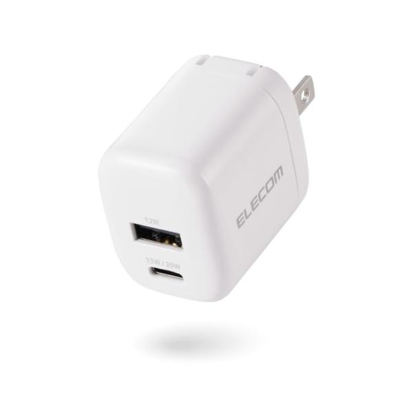- ■USB Type-C(TM)ポートとUSB-Aポートを搭載し、スマートフォンを2台同時に充電できるAC充電器です。最大33W出力のUSB Power Deliveryに対応し、MacBook Airなどのモバイルノートパソコンの充電も可能です。手のひらに収まるコンパクトサイズで、外出や出張時の持ち運びにも便利です。■USB Type-C(TM)ポートとUSB-Aポートを搭載し、対応するスマートフォン・タブレットの2台同時充電や、ノートパソコンの充電にも対応するAC充電器です。 ■USB Type-CポートはUSB Power Delivery最大33Wで充電可能、スマートフォンやiPadだけでなく、MacBook Airなどの対応するノートパソコンも充電できます。 ■※最大33Wの充電はUSB Type-Cポート単独使用時のみ、また接続された機器が対応している場合に限ります。 ■USB-Aポートは、最大出力12Wでスマートフォンやワイヤレスイヤホンなどを充電できます。 ■USB-Aポートには接続機器を自動で見分け、適した出力で充電する「おまかせ充電」機能を搭載しています。 ■2つのポートを使用して、スマートフォンなどを2台同時に充電できます。 ■※2ポート同時接続時、USB Type-Cポートは最大出力20W、USB-Aポートは最大出力12Wとなります。 ■USB Power DeliveryおよびPPS規格に対応。機器に応じて電圧、電流が変化するためスマートフォンやタブレットはもちろん、ノートパソコンまで幅広く高速充電できます。 ■※USB Power Deliveryとは、アダプターと接続機器間で情報をやり取りすることで、その機器間における最適な電力を選択し、高速充電を実現するUSB規格です。PPS(Programmable Power Supply)とは、0.02V単位で電圧を調整し、最適な電力で効率的に供給することができるUSB Power Deliveryのオプション規格です。 ■※本製品のUSB Power Delivery最大出力は33Wです。PPS(Programmable Power Supply)最大出力は33Wです。 ■本製品はUSB-IFのテストと同等のテストを当社独自で実施し、USB Power Delivery対応製品との高い互換性が保たれています。 ■GaN II(窒化ガリウムIC)を採用し、高出力ながら製品の小型化を実現しました。 ■※充電ケーブルは同梱していません。別途ご用意ください。 ■手のひらにすっぽり隠れるほど小さい(幅約42mm×厚み約30mm×高さ約39mm)ので、外出や出張などの際の持ち運びに便利です。 ■電源プラグは本体に折りたたんで、すっきりコンパクトに収納でき、持ち運びにも便利です。 ■NINTENDO SWITCH(TM) 2/NINTENDO SWITCH(TM)/NINTENDO SWITCH Lite(TM)の充電が可能です。 ■※動作モードによっては充電しながらのゲームプレイができない場合があります。また、NINTENDO SWITCH(TM) 2/NINTENDO SWITCH(TM)ではドック併用での使用には対応していません。 ■電気用品安全法(PSE)の認証品です。また、当社独自のテストを実施した高い安全性が確認された製品です。 ■耐トラッキング性の要求事項(PSE:電気用品安全法)を満たしたコンセントプラグを採用しています。 ■※機器本体や充電器が濡れた状態で充電すると、異常な発熱・焼損の原因となり大変危険ですのでおやめください。 ■※USB Type-C、Lightning、USB Micro-Bコネクター以外の端子に変換するケーブルや変換アダプターを使用すると、給電(充電)できない場合や、充電が遅くなる場合があります。 ■※USB Type-C and USB-C are trademarks of USB Implementers Forum. ■自社環境認定基準を1つ以上満たし、『THINK ECOLOGY』マークを表示した製品です。 ■環境保全に取り組み、製品の包装容器または外装箱に持続可能な森林資源から調達された紙材を使用した製品です。 ■環境への負荷軽減のため、輸送効率を高める設計の外装箱を使用した製品です。 ■環境保全に取り組み、製品の包装容器が紙・ダンボール・ポリ袋のみで構成されている製品です。■対応機種:USB Type-C(TM)ポートからUSB Power Delivery 33W、またはUSB-Aポートから12Wの規格内で充電可能な機器。2ポート以上同時接続時、合計最大32Wまでの出力で充電・給電可能な機器とその組み合わせ■定格入力電圧:AC100-240V 50/60Hz■定格入力電流:1.2A■外形寸法:幅約42mm×厚み約30mm×高さ約39mm■重量:約76g■カラー:ホワイト■使用可能地域:日本■保証期間:1年間■コネクター形状:USB Type-Cポート×1、USB-Aポート×1■コンセントプラグ仕様:90度スイング構造■使用温度範囲:0℃〜25℃■法令:◇PSE 特定電気用品■定格出力電力(単独接続時):USB Type-Cポート:最大出力33W、 USB-Aポート:最大出力12W■定格出力電力(2ポート同時接続時(1)):合計最大32W(2ポート同時出力時)USB Type-Cポート:20WUSB-Aポート:12W■定格出力電圧(単独接続時):USB Type-Cポート:5V/9V/15V/20V、 USB-Aポート:5V■定格出力電圧(2ポート同時接続時(1)):USB Type-Cポート:5V/9V、 USB-Aポート:5V■定格出力電流(単独接続時):USB Type-Cポート:5V時3A/9V時3A/15V時2.2A/20V時1.65A、 USB-Aポート2.4A■定格出力電流(2ポート同時接続時(1)):USB Type-Cポート:5V時3A/9V時2.22A USB-Aポート2.4Aエレコムダイレクトショップ