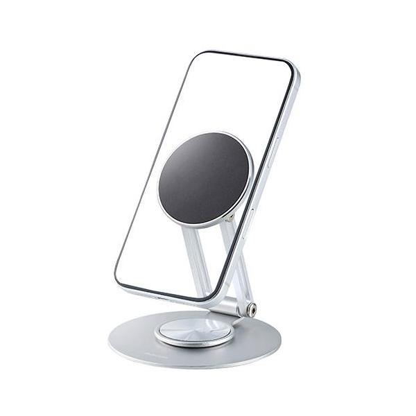 エレコム(ELECOM) P-DSM360AL01NSV シルバー MagSafe マグネット スマホスタンド 台座360°回転 角度調整 折りたたみ 卓上 メタルプレート付属