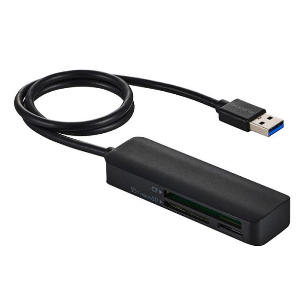 - 撮影データの転送をもっと速く快適に!パソコンへの接続に便利なUSB-Aプラグのケーブル付きメモリーカードリーダーです。SDカード、microSDカード、コンパクトフラッシュの3スロットを搭載し、デジタルカメラやアクションカメラの撮影データをパソコンへ転送可能。画像・映像データの編集やSNSへのアップロードに便利です。